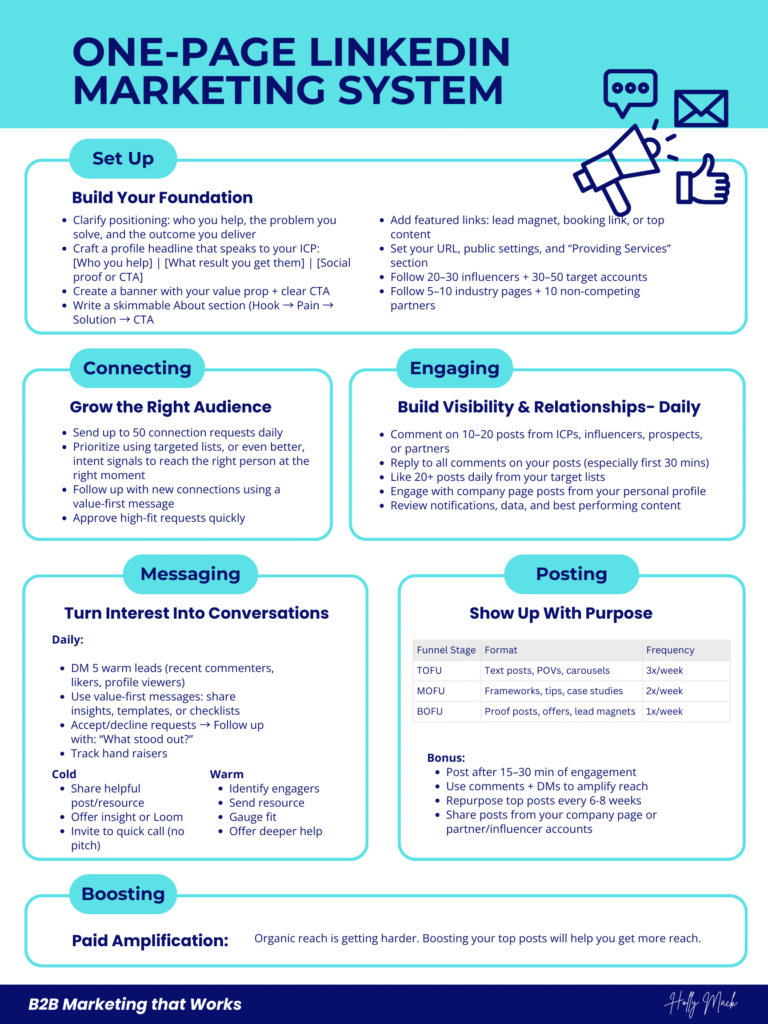LinkedIn isn’t about posting more. It’s about building a marketing system that turns authority into pipeline. When you treat it like a revenue channel, it behaves like one.